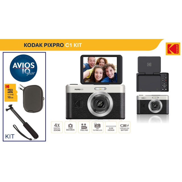 De KODAK PIXPRO C1 is de perfecte alles-in-één camera om de avonturen van het leven vast te leggen. Met zijn 13MP-sensor, 26mm vaste focuslens en 180° kantelbaar LCD-scherm ben je klaar om verbluffende foto's en video's te maken vanuit elke hoek.